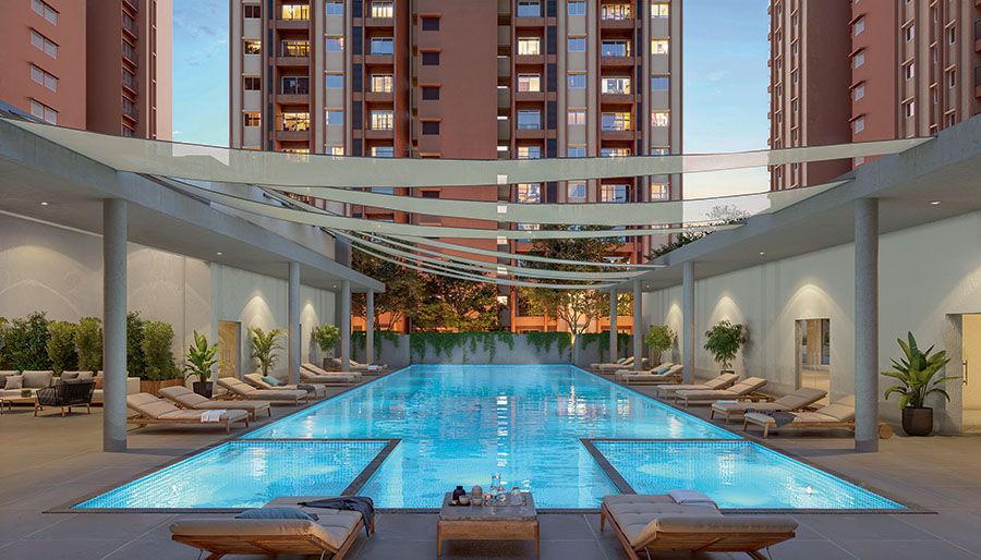 Birla Evara Sarjapur is envisioned as an urban oasis, creating a seamless connection between luxury living and lush green surroundings. The design incorporates expansive landscaped courts, shaded lounging areas, green pavilions, and natural elements that ensure year-round comfort.